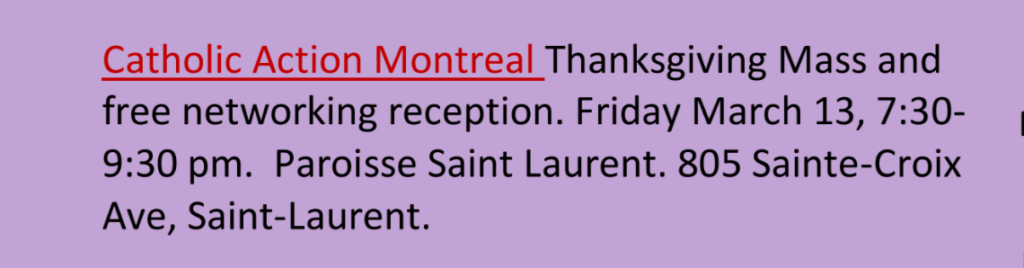 Where: St. John Brebeuf parish at 7777 George St., Lasalle, QC, H8P 1C8